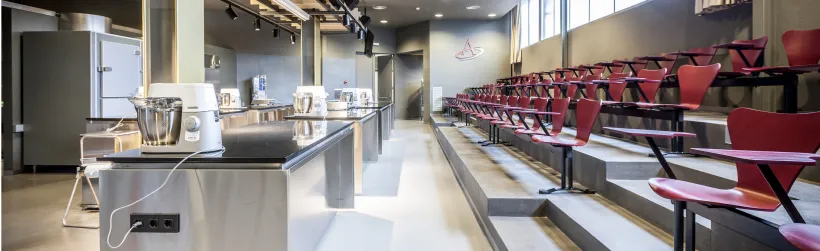 of the art technology, where top professionals offer theoretical and practical training in chocolate craftsmanship: techniques, recipes, latest trends, etc.