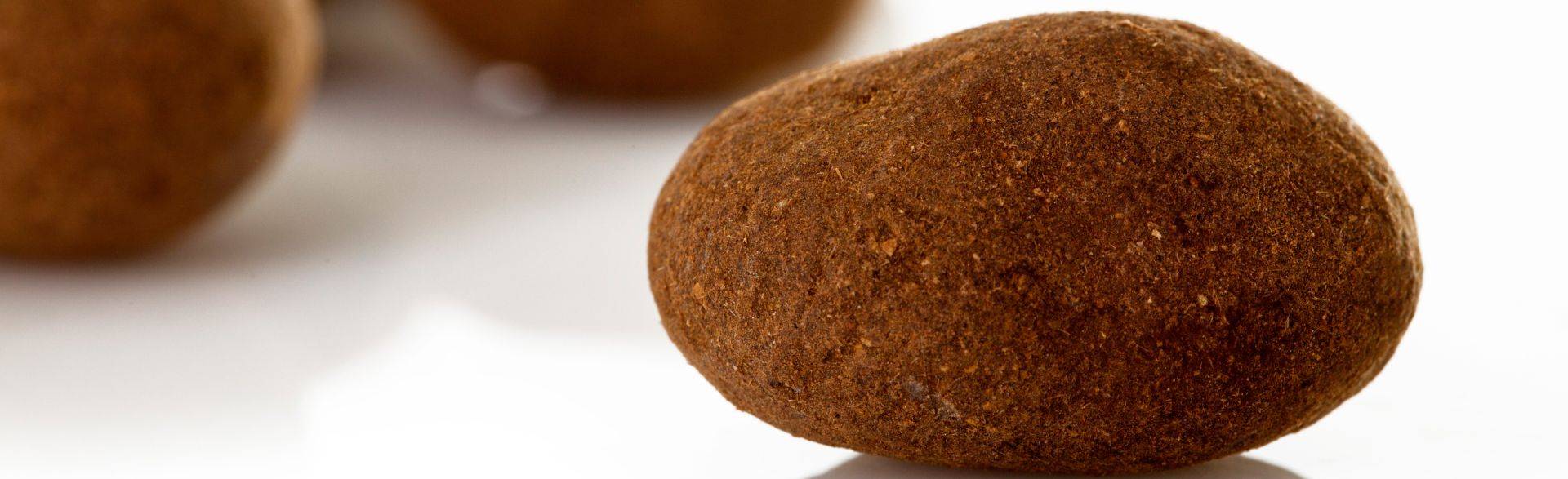 caramelized almond dragee with milk chocolate, cocoa and cinnamon