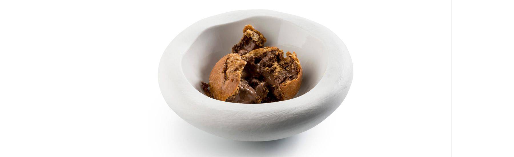A dessert tasting of memories. Nandu Jubany sets out on his journey as a Chocovic ambassador with a dessert inspired by a classic in both our cuisine and our childhood. The combination of bread, Maragda chocolate, olive oil and coarse grain salt brings delicious memories to mind of when we were children. A dessert, or teatime dish, from yesteryear that Nandu elevates to the gourmet delicatessen category