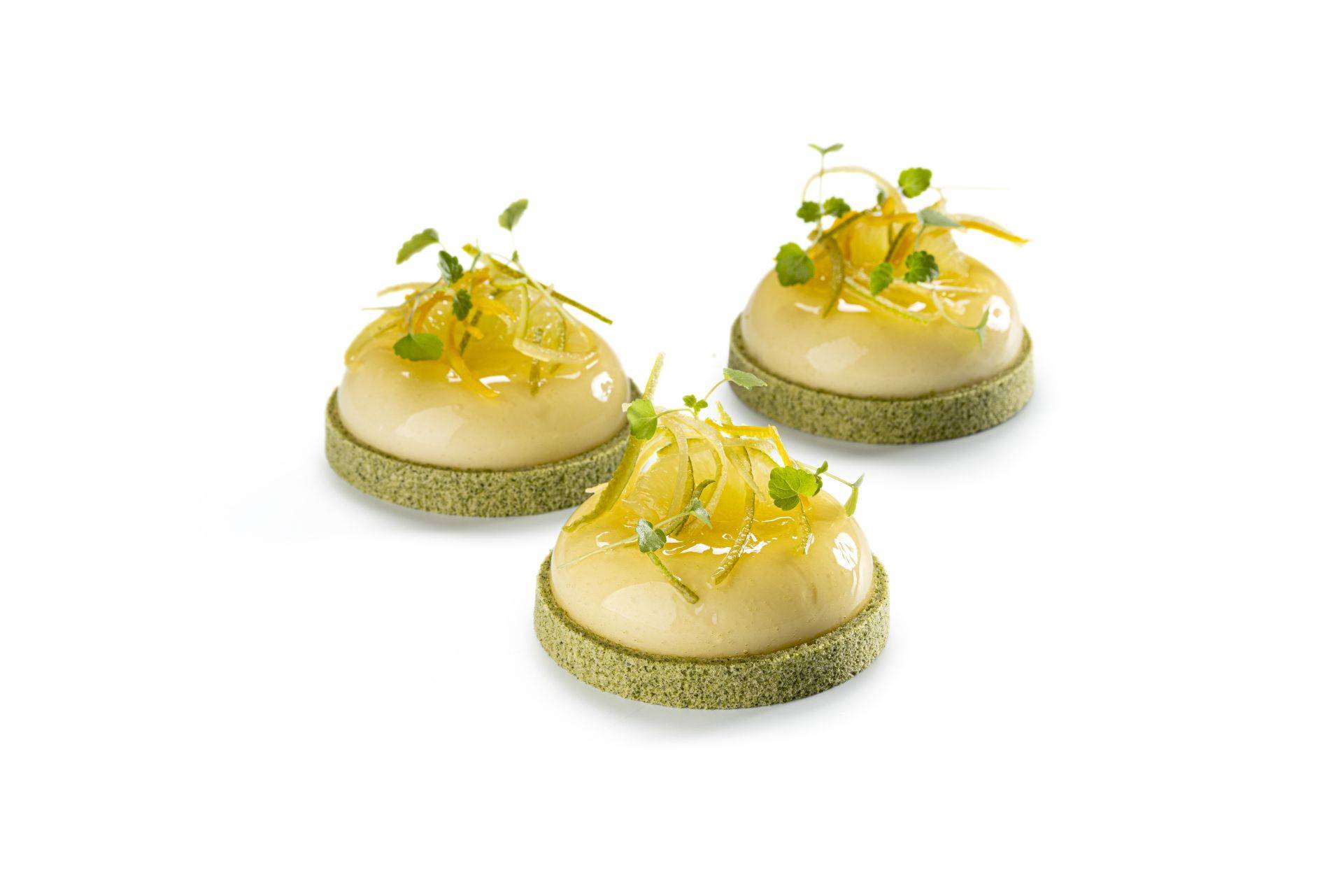 - Inside, measure out 6 g of the crisp, 10 g of the lime cream and 10 g of the citrus fruit compote. Freeze.