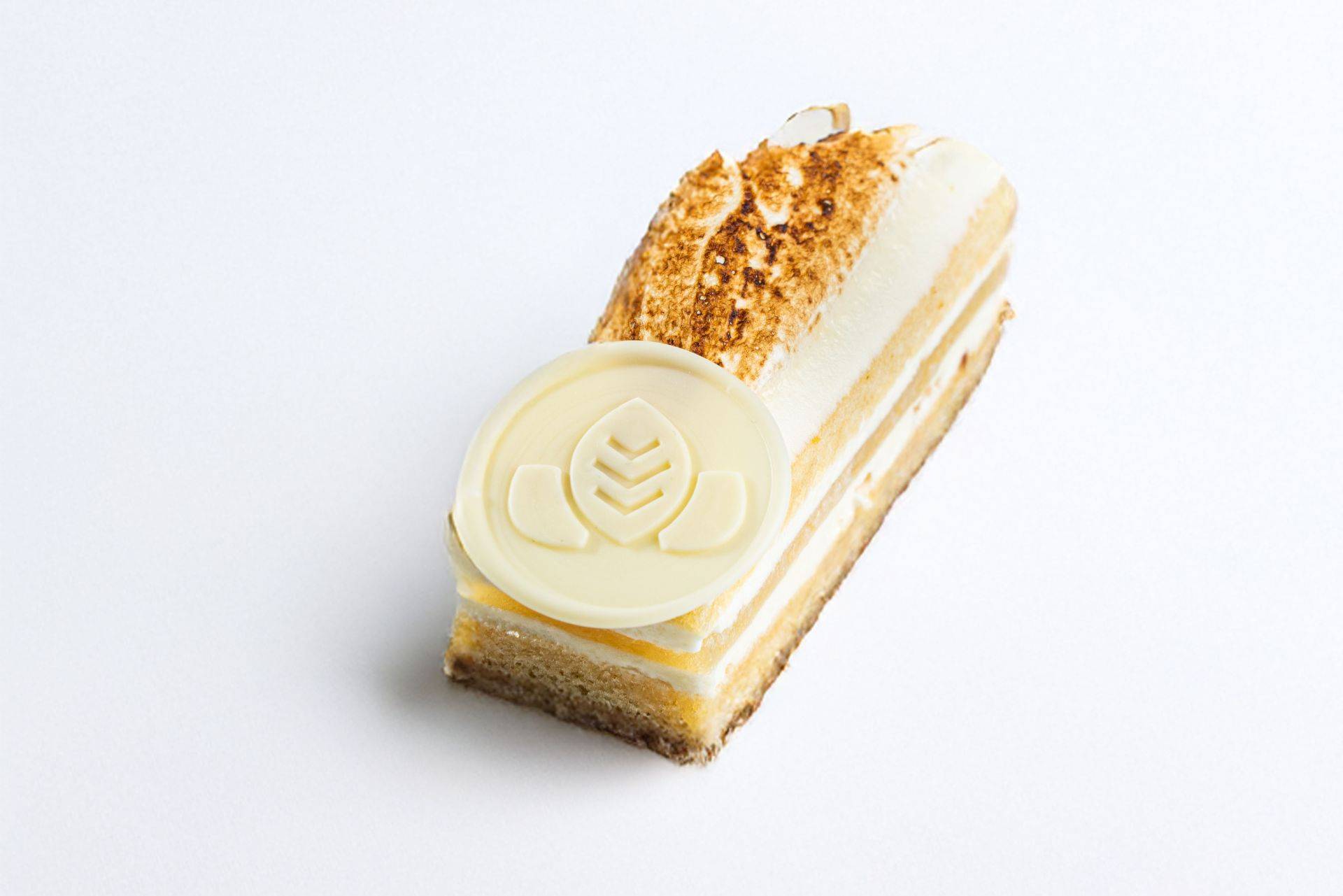 Add one layer of biscuit, pipe 700g of the yuzu mousse on top of it.