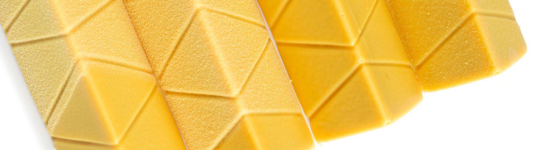 - Temper the white Istak chocolate with yellow food colouring and line the mould with the nougat.