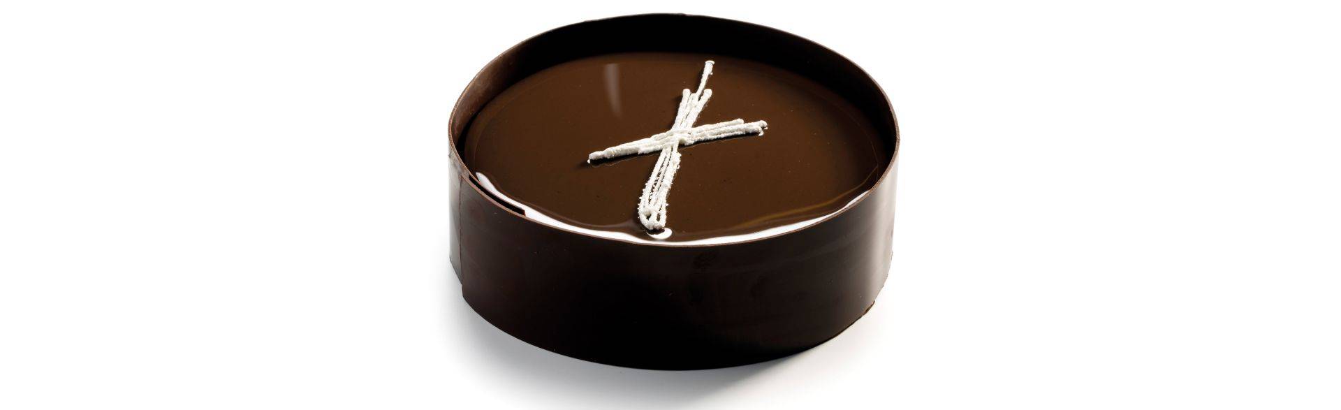 A cask transformed into a cake. Rafa Delgado combines the vanilla and toffee hints of Palo Cortado sherry with these same ingredients. Seen from above, the cake looks like a Palo Cortado cask with the characteristic X symbol of Jerez casks.