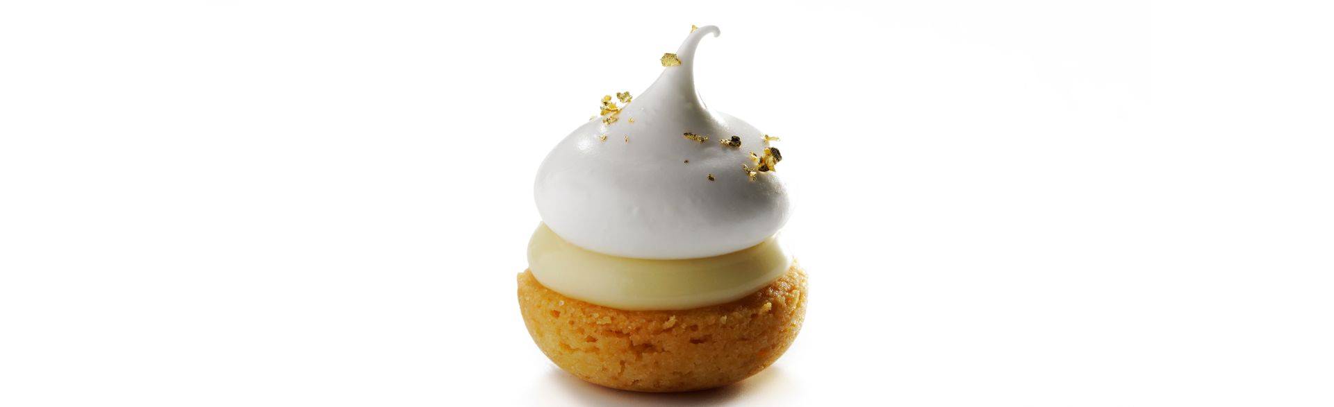 Pour the lemon ganache with a piping bag with a nº8 round tip over the sable bretón.