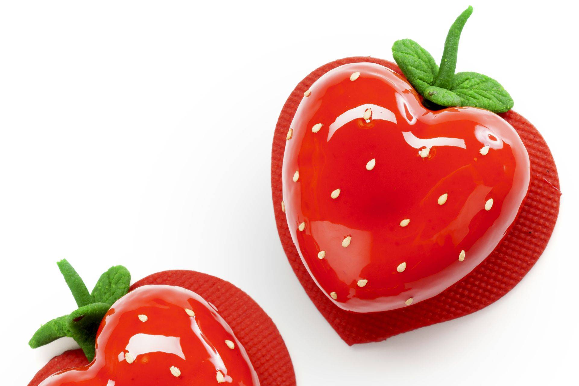 Serve the glazed dessert on a heart-shaped disc of sablé.