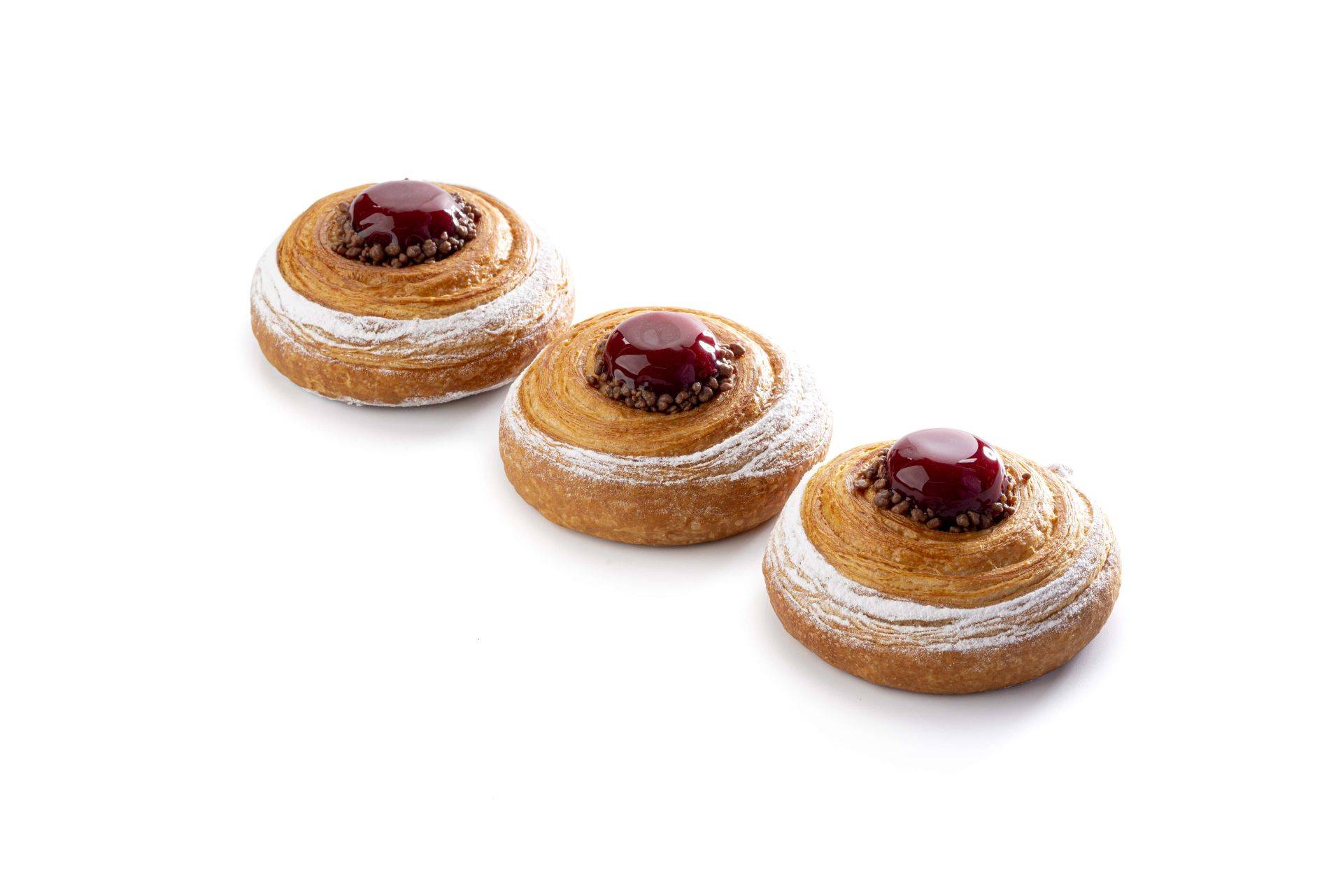 KM 0 PASTRIES There's more to life than cinnamon rolls. Our ambassador proves it with this crispy croissant dough pastry roll with a fluffy Montseny cherry filling.