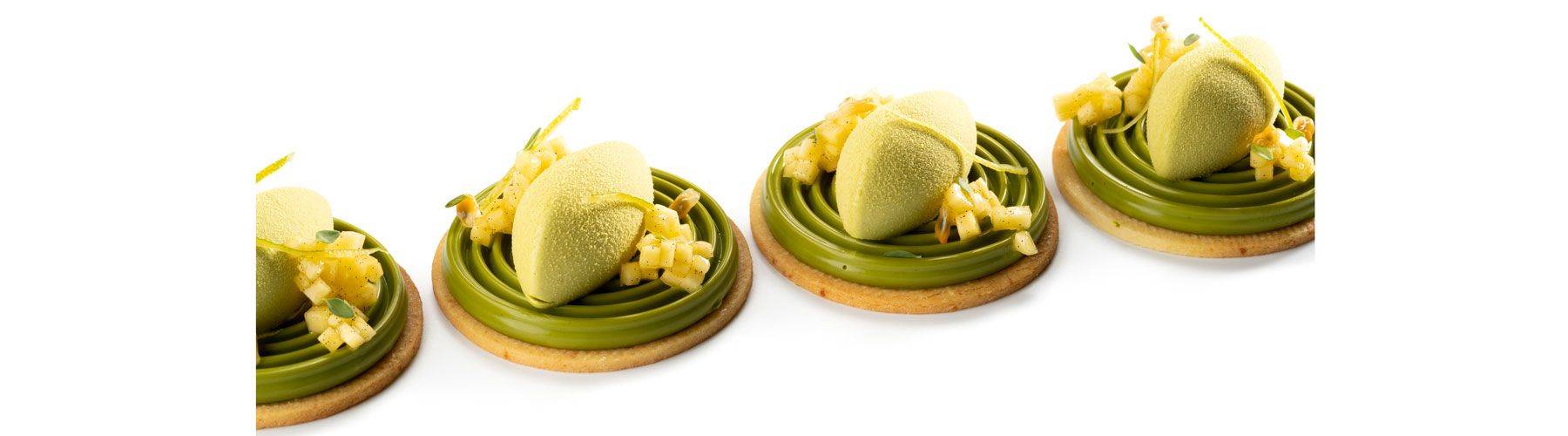 - Incorporate the melted Istak white chocolate and the pistachio paste, then add the emulsion.