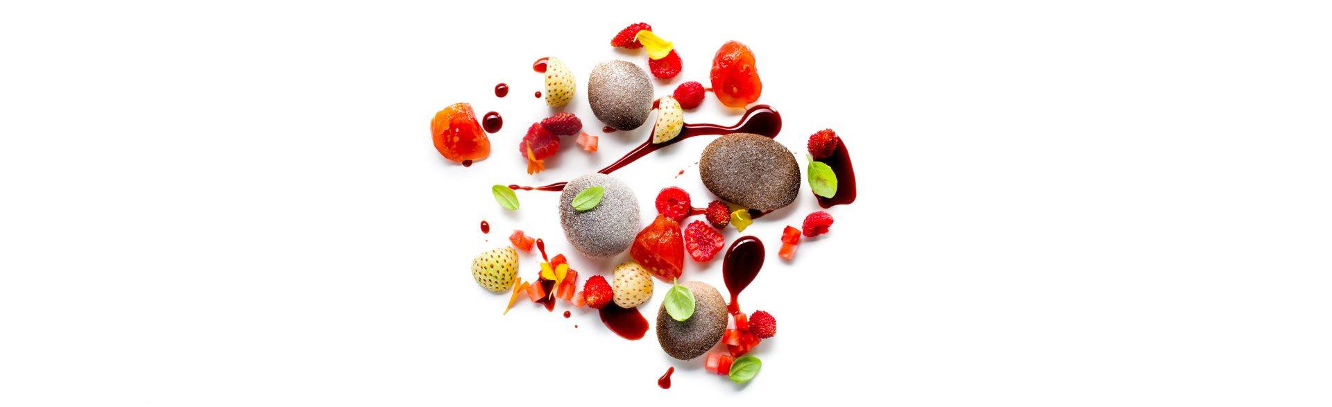 Make a caramel at 170ºC. Deglaze with the raspberry purée. Next, add the balsamic vinegar.