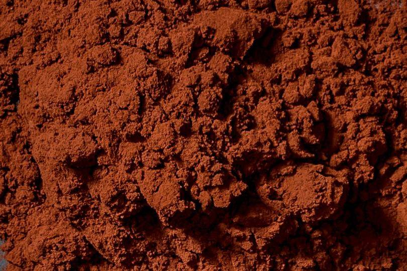 Cacao en polvo alcalinizado color marrón oscuro.