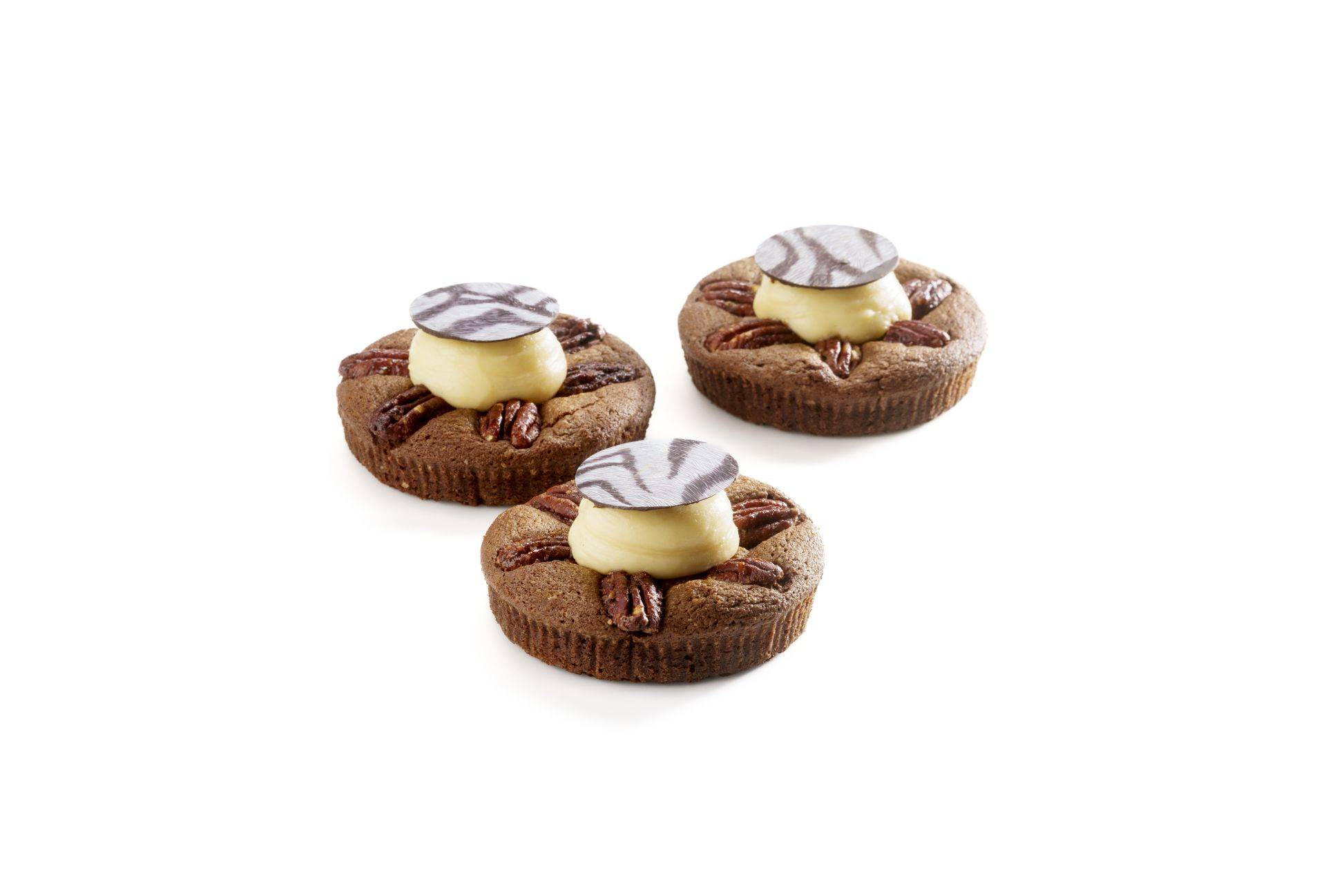 Colocar 5 nueces de pecan esparcidas sobre la masa cruda y cocer.