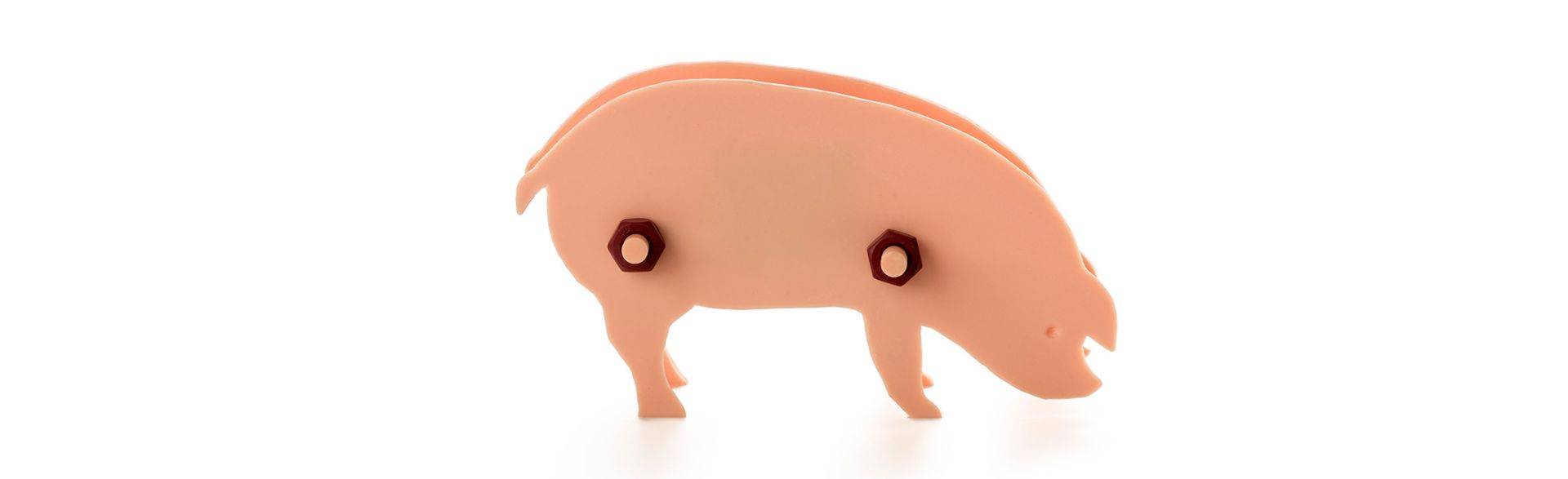 Una vez está lista la silueta del cerdo dibujado en el plástico Plaquene, recortar con bisturí y realizar las piezas de chocolate de la siguiente manera: