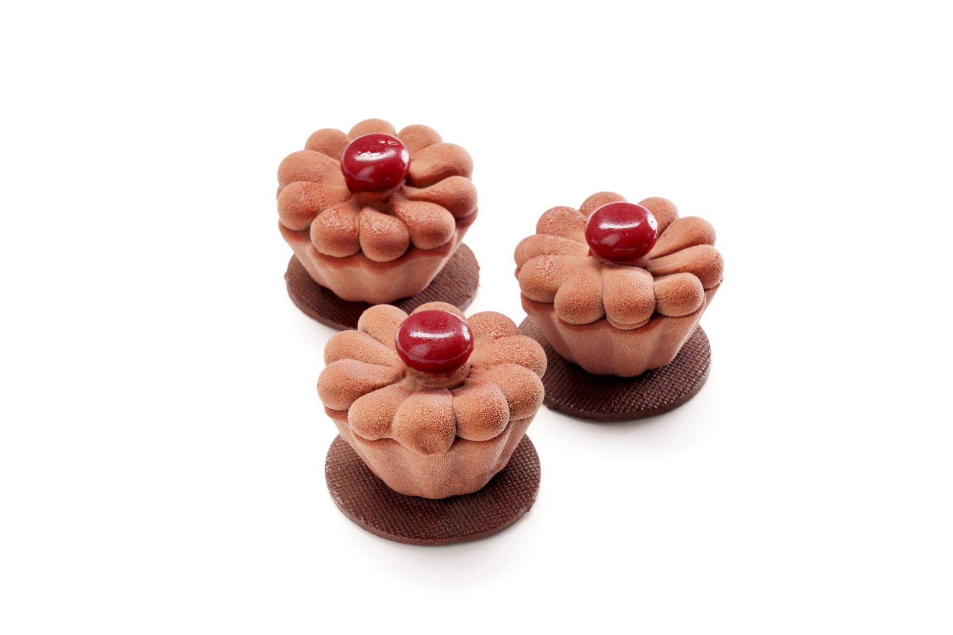 Desmoldar la elaboración anterior y aplicar los pétalos de cremoso de chocolate.