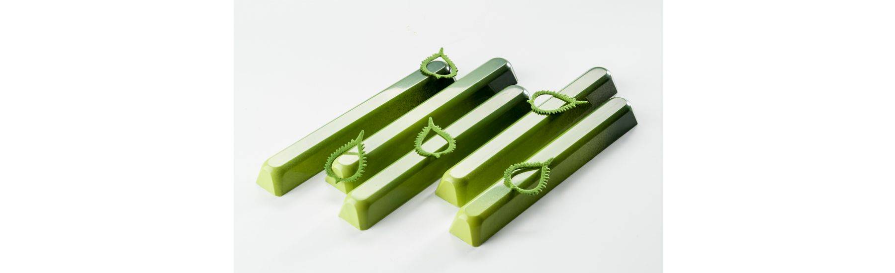 Ganache de shiso verde y yuzu Pasta de fruta de shiso verde y yuzu Encamisado blanco